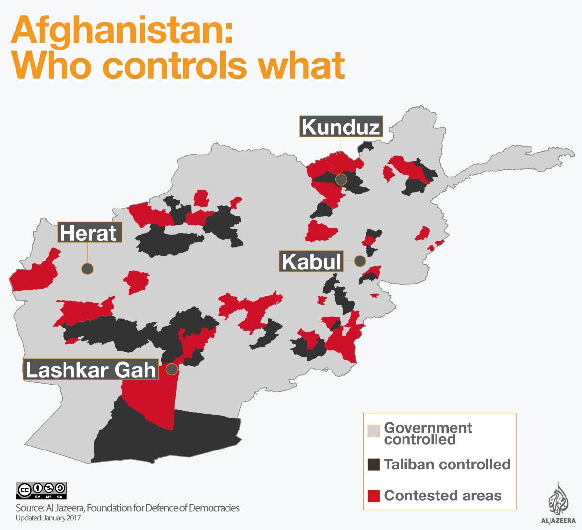 Nei tredici anni di guerra dichiarata, tuttavia, i Talebani continuano a mantenere il controllo, anche amministrativo, su molti territori.